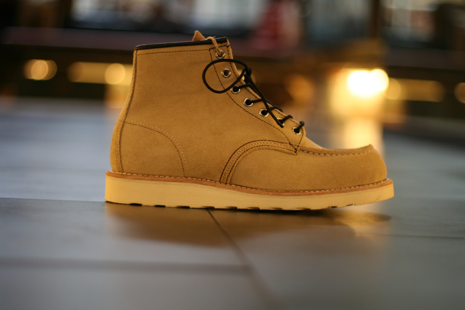 No, this is not a pair of Red Wing Shoes made of denim. Neither is this a collaboration with a big, fellow American brand. This is just the ideal 6" Moc for rigid or raw denim. The Hawthorne Abilene Roughout (8173) is most vulnerable to indigo bleeding. Wear them under your new denim and they will slowly turn blue.